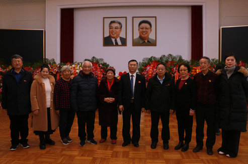 朝鲜驻华使馆参赞郑英三在纪念金正日逝世14周年观影活动上讲话。 中国民间友好代表团团长张仕文在朝鲜驻华使馆举行的纪念金正日同志逝世14周年观影活动上讲话。 12月16日15时,朝鲜驻华大使馆举行了纪念伟大领袖金正日同志逝世14周年观影会。朝鲜驻华大使馆参赞郑英三在讲话中指出,感谢中共中央直属机关有关单位、中国民间友好代表团、北京普世国学文化院等社会各界人士参加观影活动。在朝鲜人民的伟大领导者金正日同志去世14周年之际,我们怀着对金正日同志无比崇敬的敬仰之心,聚集在一起,深切地回顾他的革命生涯和丰功伟绩。伟大的领导者金正日同志以深邃的思想理论、非凡的领导力和如火般的热爱,在时代与革命、祖国与人民面前铸就了永世不朽的丰功伟绩,堪称杰出的政治家、绝世的爱国者、人民永恒的领袖。 中国民间友好代表团团长张仕文在朝鲜驻华使馆向金正日同志逝世14周年敬献花篮并整理缎带。 中国民间友好代表团团长张仕文在朝鲜驻华使馆同郑英三参赞(右)亲切交谈合影。 他说,伟大的将军以卓越的思想和领导,使人民的尊严与价值达到至高境界,领导与人民以血浓于水的情谊紧密团结,书写了同心同德新的历史篇章,为复兴强国建设奠定了坚如磐石的百年基石。伟大的领袖金正日同志是我们国家和人民尊严与命运的杰出守护者。伟大的将军在革命领导的全过程中,始终秉持着自主的坚定信念和钢铁般的意志,将朝鲜革命的最高利益和朝鲜人民的权利捍卫视为生命的最高追求。 朝鲜驻华使馆参赞郑英三(右5)、与中国民间友好代表团团长张仕文(右4)、唐克碧(左5)代表团成员合影。 朝鲜驻华使馆参赞郑英三(左4)同中国民间友好代表团团长张仕文(右4)等亲切交谈合影。 他讲到,在上世纪90年代,我国面临严峻考验与重重难关之际,伟大的将军将先军政治确立为社会主义基本政治方式,并引领尖锐的反帝反美斗争取得胜利。以伟大将军为子孙后代万世繁荣奠定的不朽爱国功绩为基石,我们日益强盛的祖国必将永远战无不胜。今天,我们要观看的是反映金正日同志的后代观的纪录片。我们将会能够了解金正日同志爱国爱民历史的一部分。伟大的领导者金正日同志的爱国爱民神圣历史,正在我们敬爱的金正恩同志领导下光辉地继承和发展。敬爱的总书记金正日同志的所有决策与实践,始终致力于彰显伟大将军的崇高爱国功绩,并让将军生前的遗愿与夙愿得以实现。敬爱的金正恩同志肩负着祖国和人民命运崇高责任感与使命感、开启全面国家复兴伟大新时代,让我们高举他的旗帜,主体强国的未来必将无限光明灿烂。 朝鲜驻华使馆参赞郑英三(中),亲切接见中国民间友好代表团成员并合影。 抗美援朝老兵后代、中国民间友好代表团团长、北京普世国学文化院常务院长张仕文讲话指出,感谢朝鲜驻华大使馆参赞郑英三同志对中国民间友好代表团的盛情邀请和热情周到的接待表示衷心感谢,并谨致崇高的敬意!他说:“我是一名抗美援朝出国作战老兵后代。今天,我怀着十分崇敬与缅怀之情纪念朝鲜人民的伟大领袖金正日同志逝世14周年。 他讲到,1950年10月,中国人民响应伟大领袖毛泽东主席 “抗美援朝、保家卫国”的伟大号召,中国人民志愿军雄纠纠、 气昂昂跨过鸭绿江,为正义而战、为和平而战,取得了抗美援朝战争的伟大胜利。老一辈伟大领袖金日成、金正日同志高度重视两国关系的发展,为中朝两国友谊付出了巨大心血,作出了重大贡献。金日成、金正日同志虽已逝世多年,但他们的光辉思想代代相传,他们永远活在中朝两国人民心中! 朝鲜驻华使馆参赞郑英三(右9)亲切会见中国民间友好代表团并合影。 他说,我父亲张开选五十年代,参加伟大的抗美援朝战争,朝鲜停战后重建家园,在朝鲜战斗生活的五年间,与朝鲜人民结下了深厚的情谊,曾获得中朝两国颁发的多枚纪念章。回国后,为新中国成立十周年献礼,参加了建设人民大会堂重点工程,当时的木工班班长是后来的全国政协主席李瑞环。我父亲一生,为国防建设和社会主义建设事业作出了贡献。2020年10月,被中共中央、国务院、中央军委颁授 “中国人民志愿军抗美援朝出国作战七十周年纪念章。如今,当年参加抗美援朝出国作战的许多老兵相继逝世,但伟大的抗美援朝精神和金日成、金正日同志留下的宝贵精神财富,将激励着一代又一代中朝两国人民携手共进,在各自发展建设道路上不断前行!我们坚信,中朝友谊会在革命先辈精神鼓舞下,在两党两国领导人的带领下,让我们铭记历史,传承友谊,共同创造人类更加美好的未来! 中共中央直属机关、民间社团组织等各界代表也发表了讲话。 12月17日上午,中国民间友好代表团团长、抗美援朝志愿军后代张仕文率领代表团到朝鲜驻华大使馆,向朝鲜伟大领袖金正日同志逝世14周年敬献花篮,受到朝鲜驻华大使馆参赞郑英三同志热情接待,宾主亲切交谈。郑英三参赞与代表团全体成员集体合影后,还与代表团成员逐一合影。代表团成员纷纷表示,中朝两国人民在两党两国领导人的带领下,中朝两国世代友好,中朝友谊万古长青! 参加活动的中国民间友好代表团成人员是:张仕文、唐克碧、孙振发、周树花、李桐彦、解秀英、王国平、李明南、梁斌斌、董继东、李宝成、常魁星、臧学雨、卢颍中、石海燕、许龙、皮特尔、解